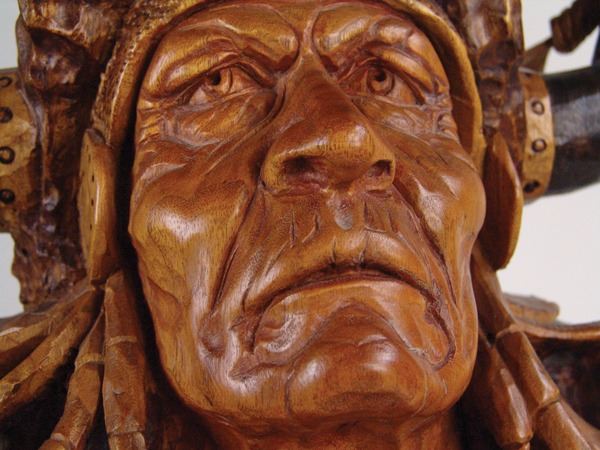 Native American Face 1 Plains Roughout Wilkerson Woodcarving
