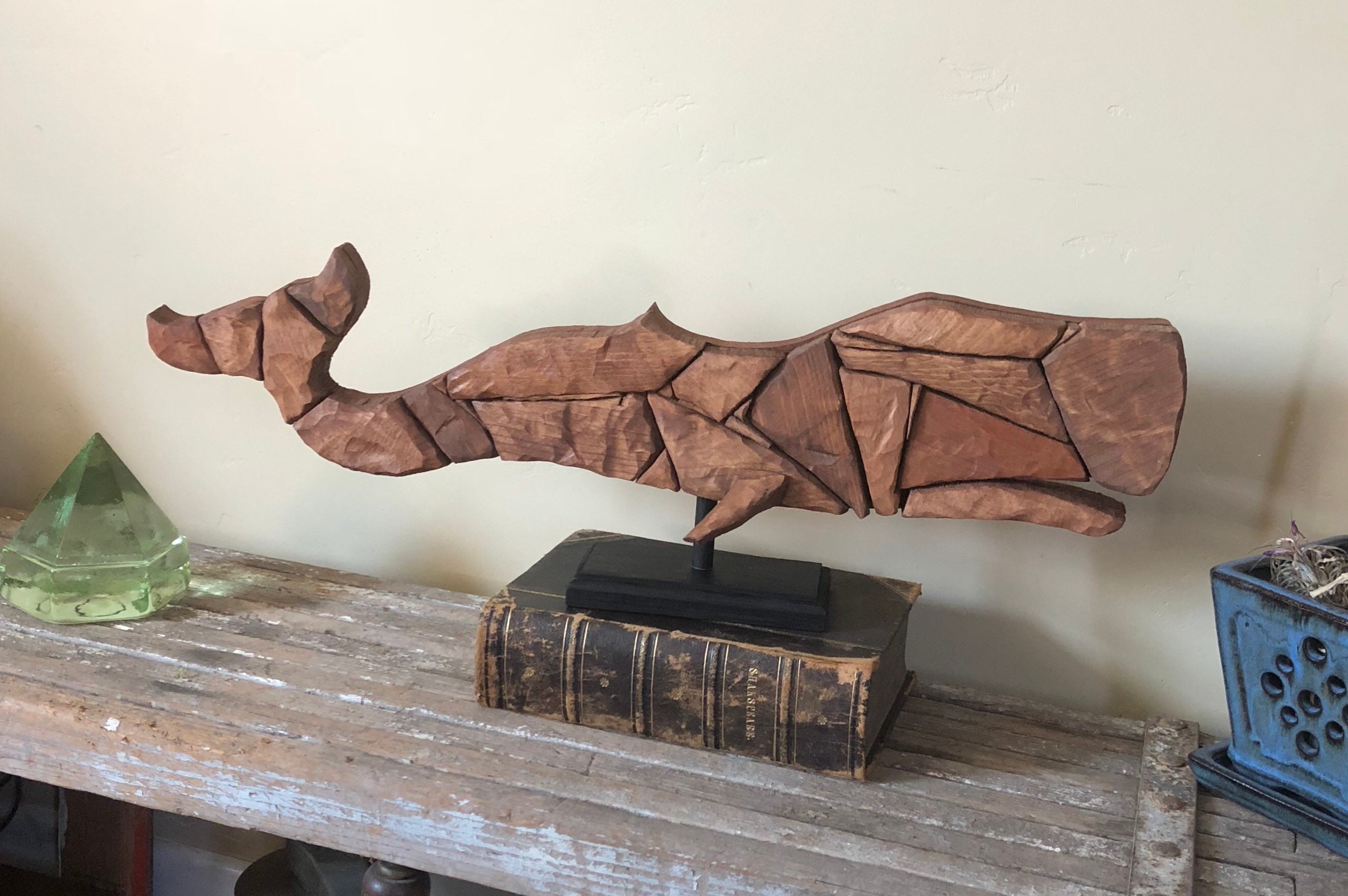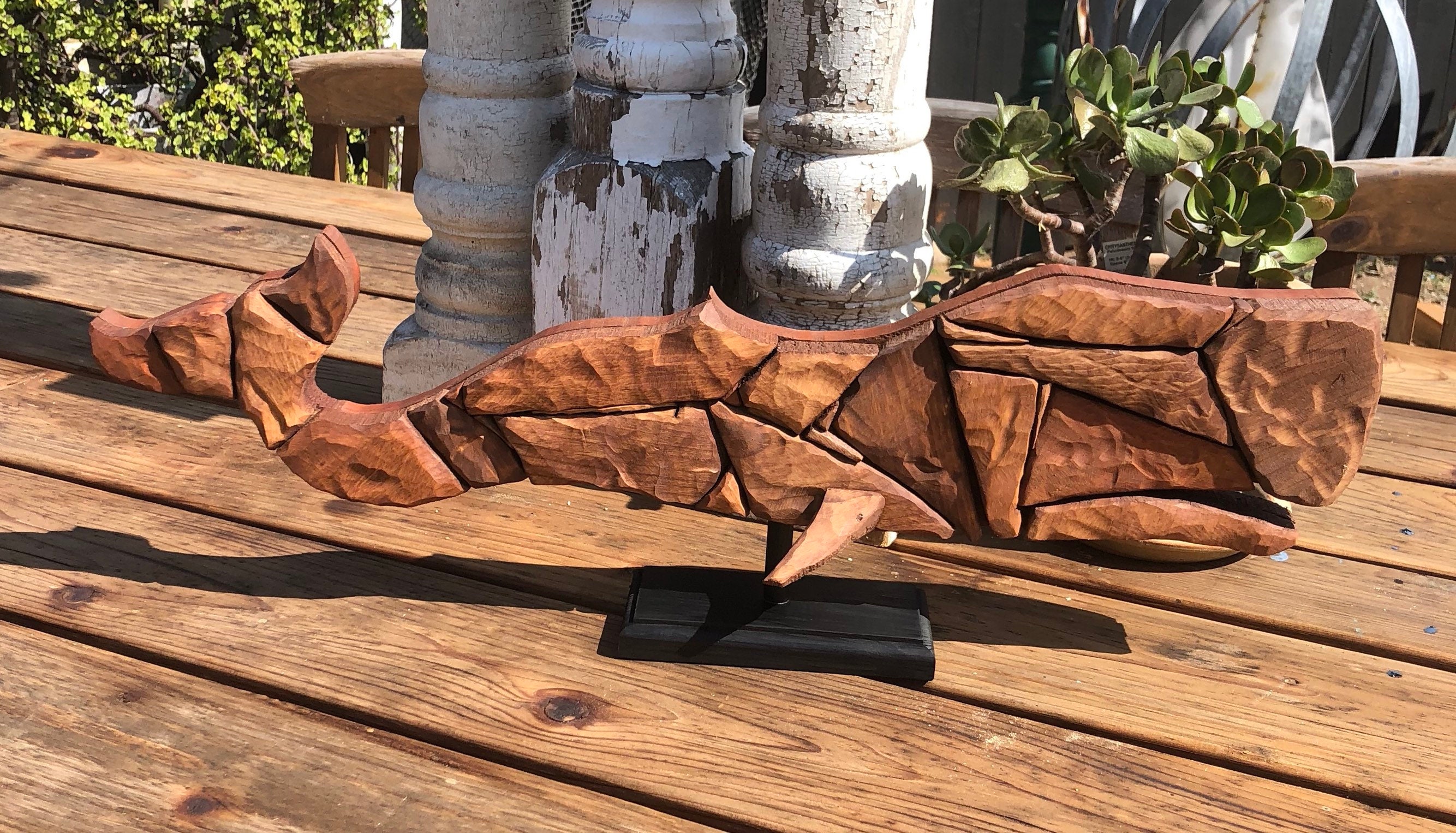 Hand Carved Wood Platform Linked Beach House Marine Life Art