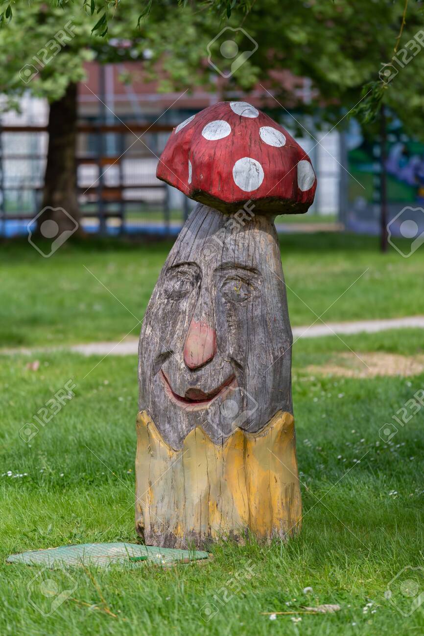 Beautiful Carved Wood Columns Mushroom Shapes In The Beach