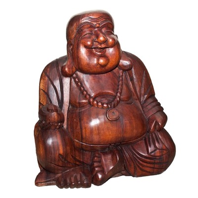 Happy Buddha Wood Figure Wooden Sculpture Holzbuddha Holzstatue