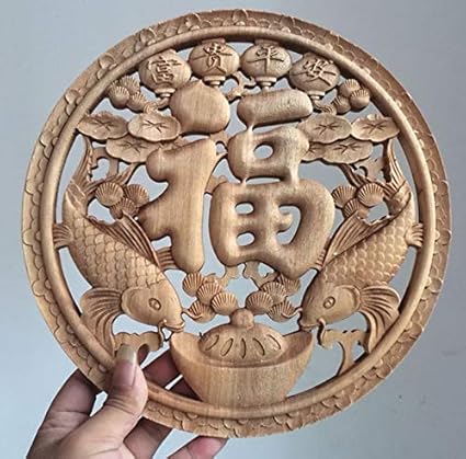 New Asian Chinese Round Camphor Wood Carving Wall Art Home Decor