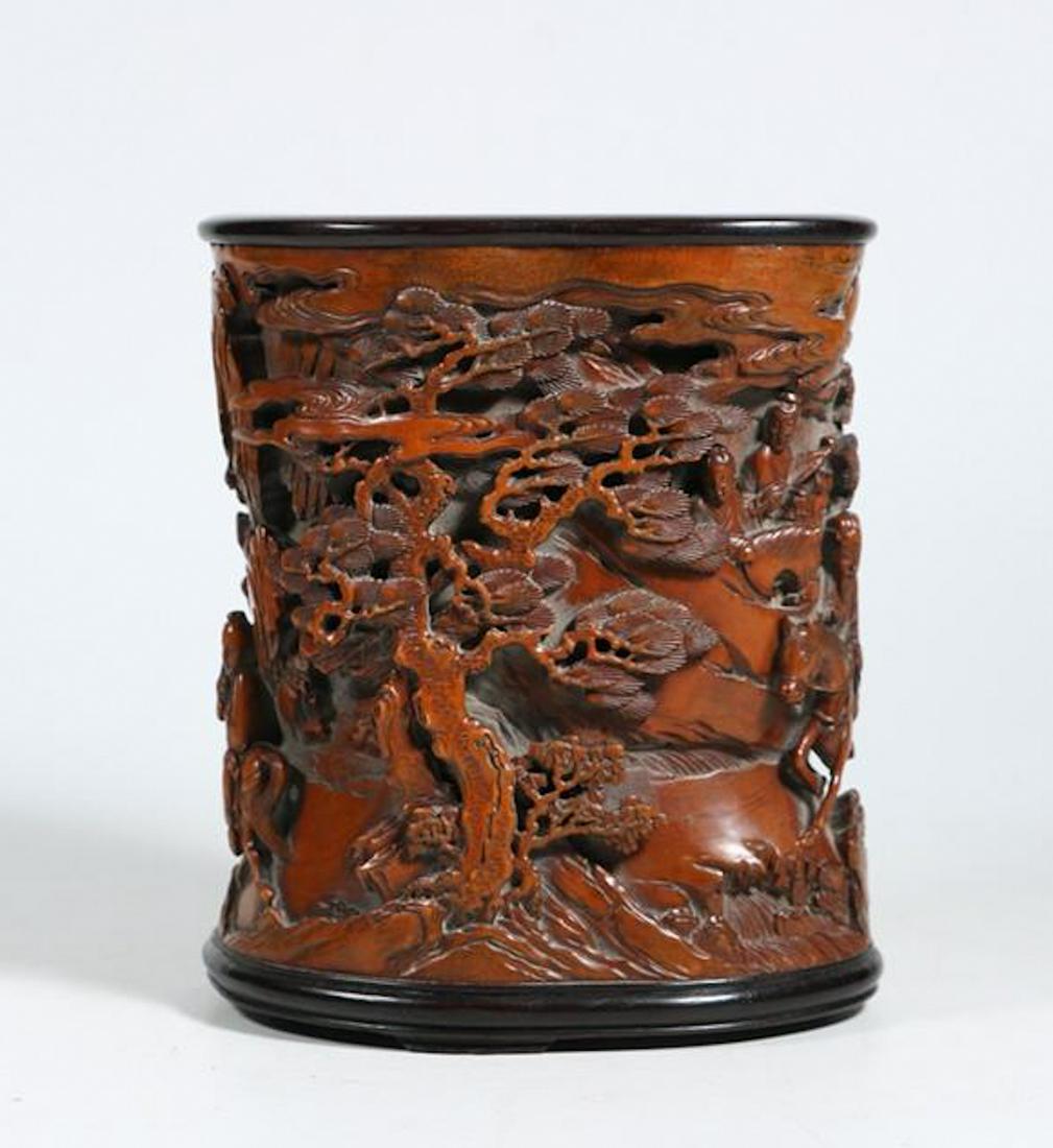Chinese Huangyang Wood Carved Figurine Brush Pot Sep 12 2019