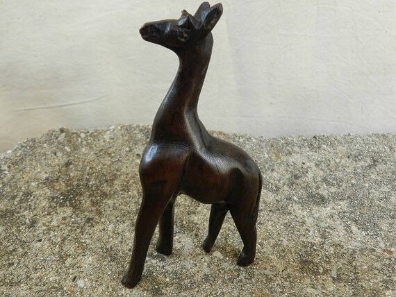 Giraffe Wood Carved Figurine Statue Handcarved Handmade Wild