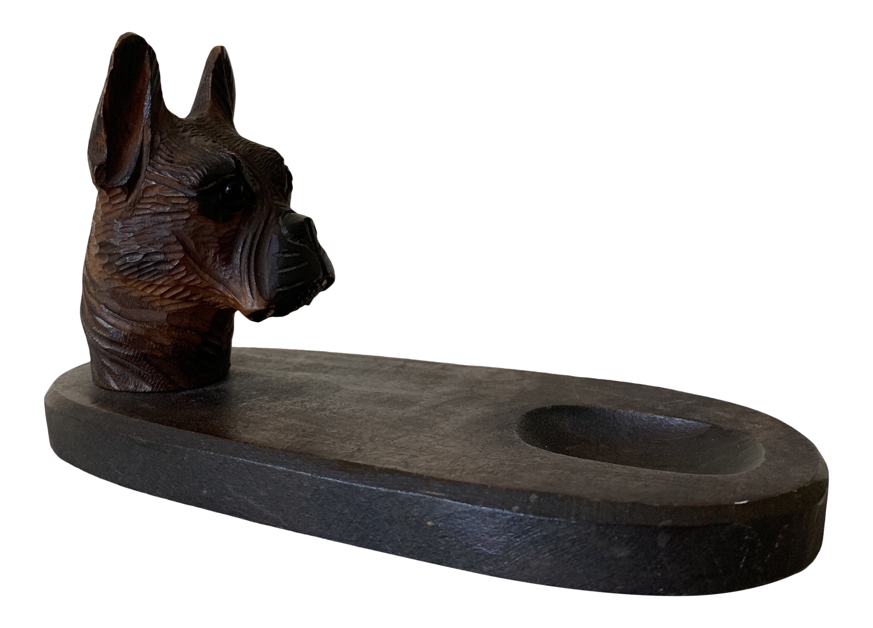 Antique 1800s German Carved Black Forest Wood Boxer Dog Pipe Stand