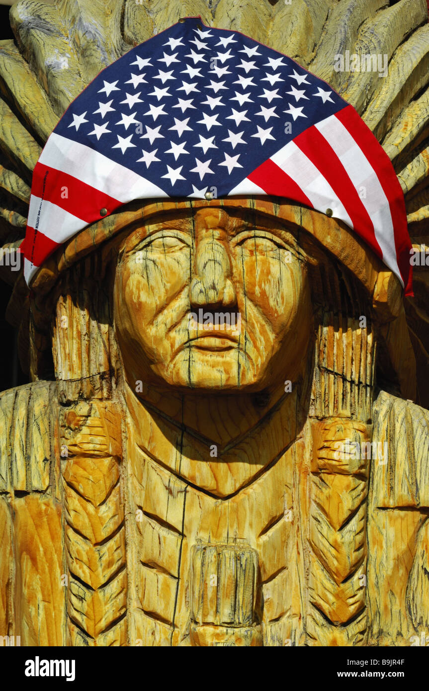 Wood Statue Native Americans Flag America Arizona Usa America