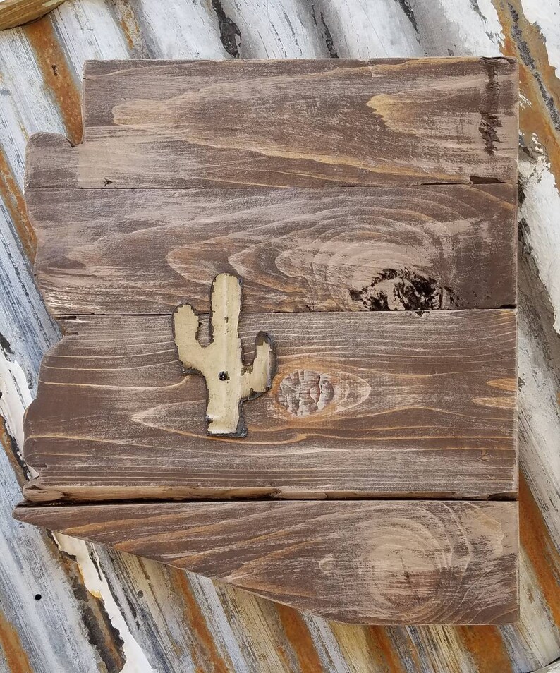 Medium Arizona Pallet Sign With Corrugated Metal Cactus Etsy