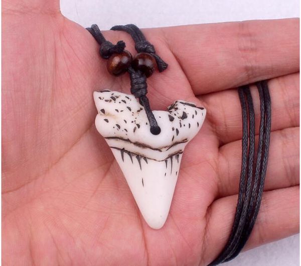 Imitation Yak Bone Carving Shark Tooth Charm Pendant Wood Beads