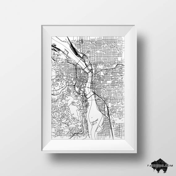Portland Oregon Map Gift Portland Wall Art Print City Poster Etsy