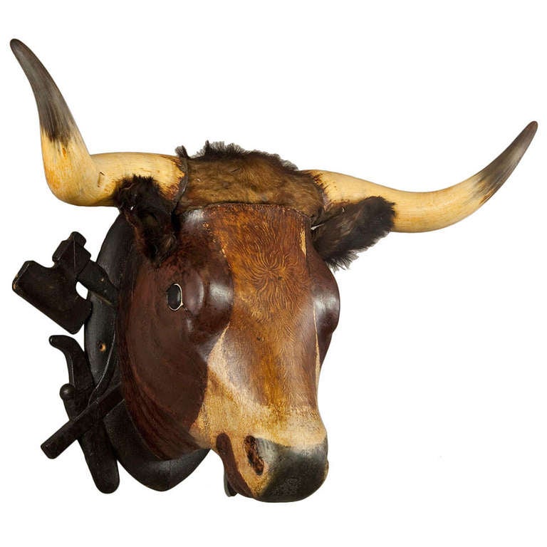Wooden Carved Bull Head From A Butchery Circa 1880 For Sale At