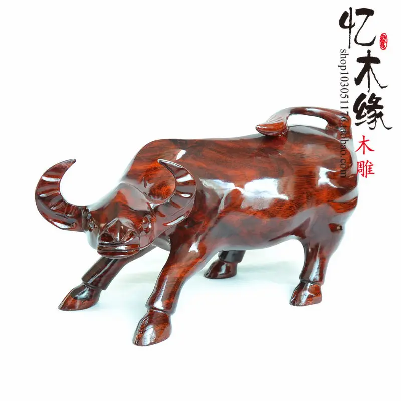 Wood Carving Crafts Mahogany Niu Wang Choi Wall Street Bull Zodiac