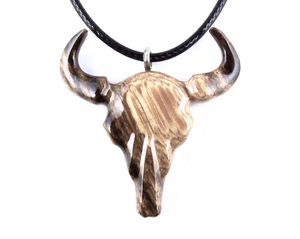 Amazon Com Bull Head Pendant Necklace Mens Jewelry Hand Carved In