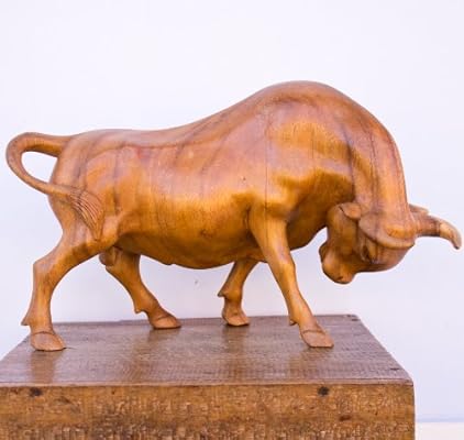 Wood Carving Bull Wooden Bull Statue Wooden Bull Figurine Etsy