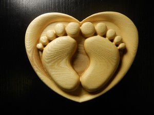 Wood Carved Picture Wall Decoration Plaque Baby Feet In Heart